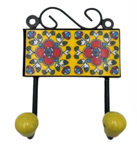 HANGER TILE YELLOW RED 2 HOOKS 5x5